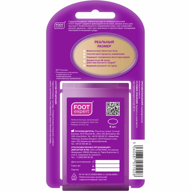 Фут Эксперт пластырь гидроколлоидный от влажных мозолей 3,7х5,5см №6