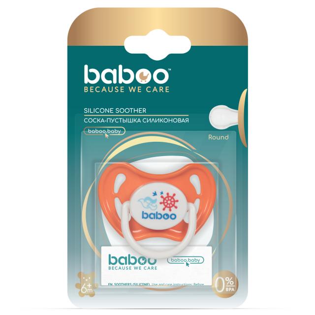 Соска-пустышка силик. кругл Marine 6 мес+ оранж. BABOO