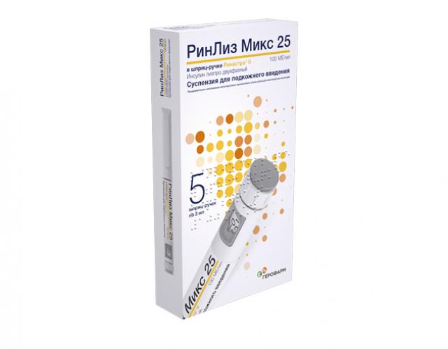 РинЛиз Микс 25 представляет собой готовую смесь, состоящую из раствора инсулина лизпро 25% (аналог человеческого инсулина короткого действия) и суспензии инсулина лизпро протамина 75% (аналог человеческого инсулина средней продолжительности действия). Основным действием инсулина лизпро является регуляция метаболизма глюкозы.