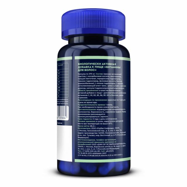 Биологически активная добавка к пище «Витамины для волос», 60 капсул (капсулы по 370 мг)