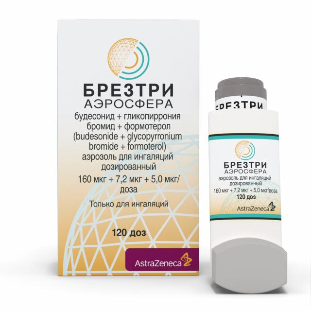 БРЕЗТРИ АЭРОСФЕРА, 160 мкг + 7,2 мкг + 5,0 мкг/доза, аэрозоль для ингаляций дозированный