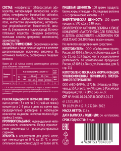 Рекомендации по применению: взрослым и детям с 3-х лет по 5 г (1 чайная ложка) концентрата 2-3 раза в день во время еды, предварительно растворив в небольшом количестве жидкости, исключая молоко. Курс приёма 1 месяц.