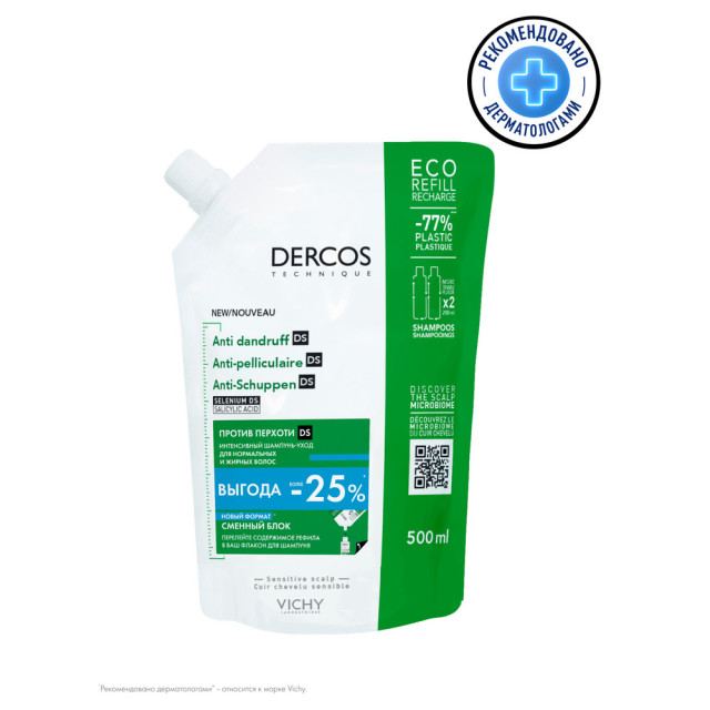 Виши Деркос шампунь интенсивный против перхоти для нормальных и жирных волос 500мл сменный блок