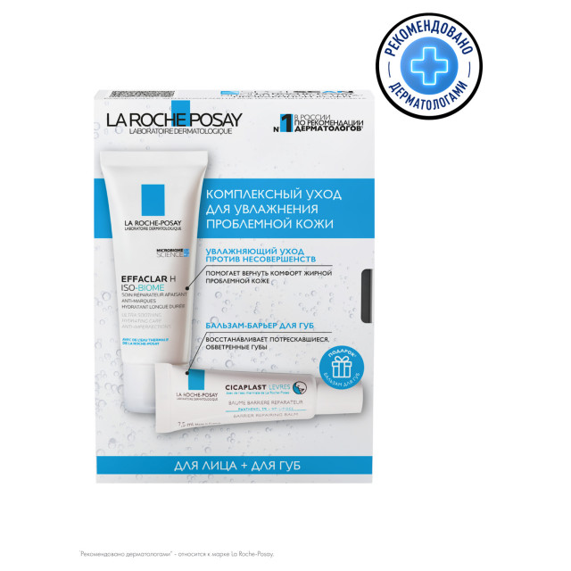 EFFACLAR Н Iso-Biome УЛЬТРА Успокаивающий Восстанавливающий Уход против несовершенств 40 мл + CICAPLAST LEVRES Восстанавливающий бальзам-барьер для губ 7,5 мл в подарок