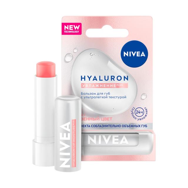 Попробуйте бальзам для губ с ультралегкой текстурой HYALURON Увлажнение PLUS от NIVEA с гиалуроновой кислотой и ментолом. Обогащённая Гиалуроновой кислотой* и ментолом обволакивающая текстура бальзама наполняет губы влагой, подчеркивает естественный нежно-розовый цвет и придает соблазнительный объем с эффектом увеличенных губ. Мгновенно тая, гигиеническая помада дарит губам свежий, цветочно-фруктовый аромат, ухаживает и восстанавливает кожу, увлажняет 24 часа**, не оставляя ощущения липкости. Из-за ментола в составе на губах может ощущаться холодок и легкое покалывание.