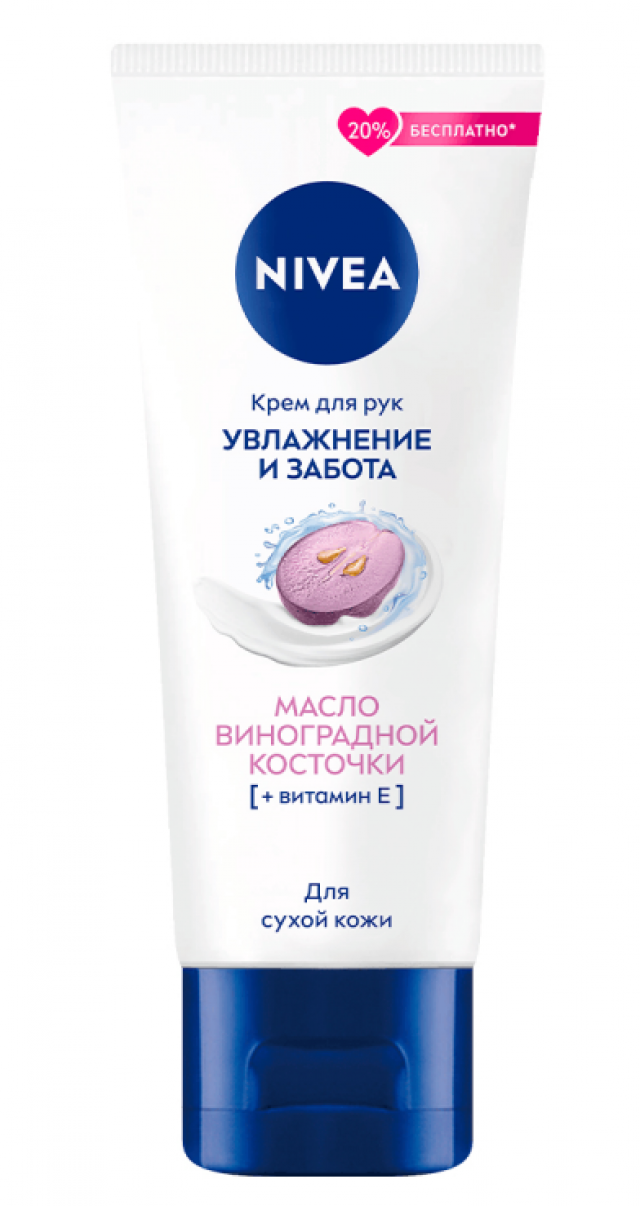 Нежная кожа рук регулярно подвергается воздействию негативных факторов, таких как частое применение антисептиков, холодный ветер, дождь, другие воздействия окружающей среды. Все это может привести к возникновению ощущения сухости, стянутости и дискомфорта. Прощайтесь с сухостью кожи! Попробуйте крем для рук «Увлажнение и забота» от NIVEA с маслом виноградной косточки и витамином Е. Крем глубоко питает и увлажняет кожу, придавая рукам ухоженный вид.