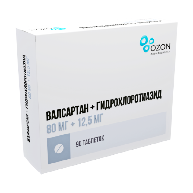 Валсартан+Гидрохлортиазид Озон таблетки покрытые оболочкой 80мг+12,5мг №90