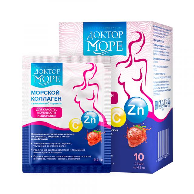 Доктор Море Морской коллаген, со вкусом клубники, саше-пакеты по саше 10шт массой 6.5г