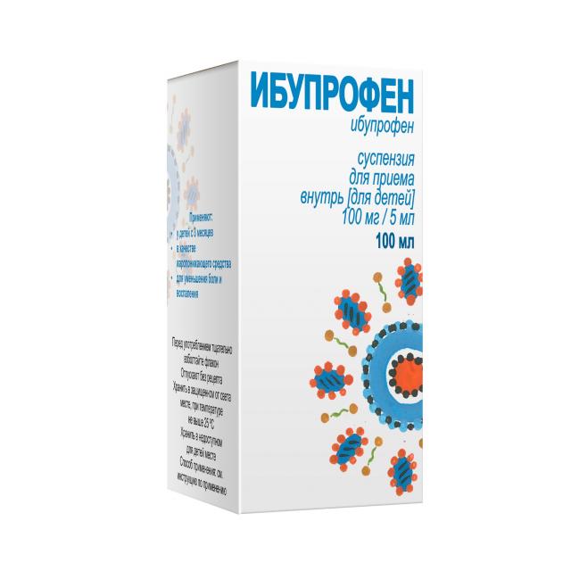 Перед употреблением тщательно взболтайте флакон. 5 мл препарата содержат 100 мг ибупрофена или 20 мг ибупрофена в 1 мл.