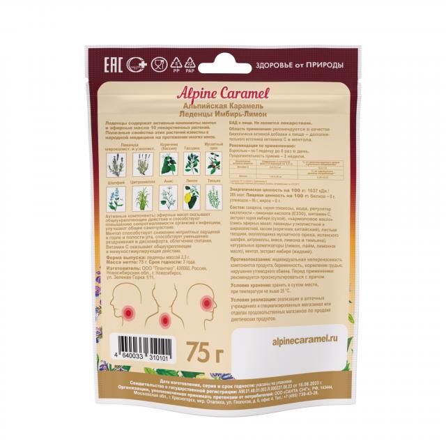 Альпийская Карамель леденцы имбирь/лимон 75г