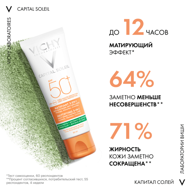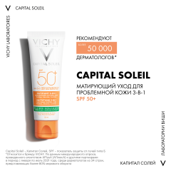 Виши Капитал Солей крем для жирной кожи 3в1 SPF50+ 50мл
