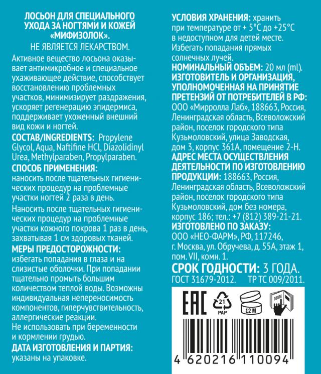 Мифизолок лосьон для специального ухода за ногтями и кожей 20мл Импловит