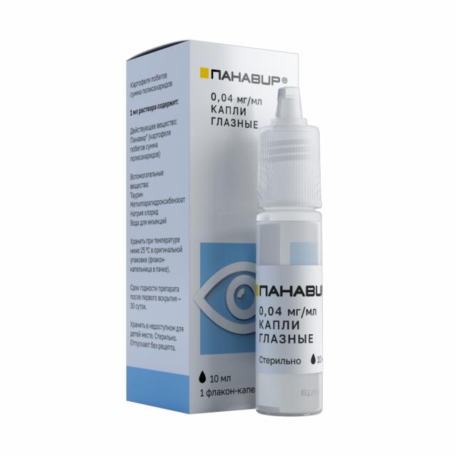 Препарат Панавир® содержит действующее вещество растительного происхождения – Панавир® (картофеля побегов сумма полисахаридов). Относится к группе противовирусных и противомикробных средств, применяемых для лечения заболеваний глаз. Препарат Панавир® препятствует размножению вирусов герпеса и аденовирусов в пораженных клетках тканей глаза.