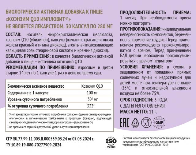 Коэнзим Q10 капсулы 100мг №30 Импловит