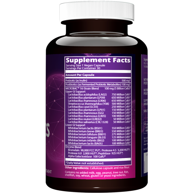 Наша индивидуальная система живого транспорта MICROBAC™ повышает стабильность и доставку наших пробиотиков, обеспечивая колонизацию и активность 25 миллиардов клеток для поддержания микробиома вашего кишечника.