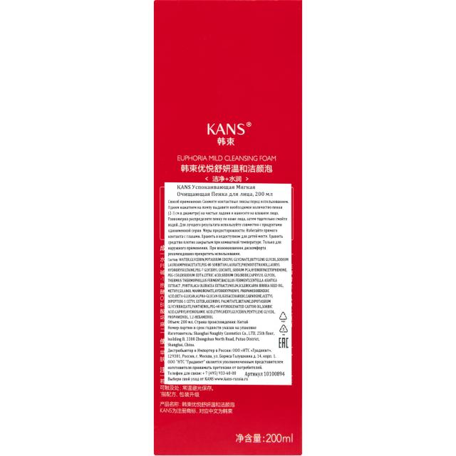 Пенка для лица KANS Euphoria Mild Cleansing Foam из линейки «Зелёная капсула» – мягкое средство для бережного очищения и умывания чувствительной кожи лица, склонной к покраснениям, раздражениям, аллергическим реакциям, проявлениям купероза и с другими признаками нарушения барьерных функций кожи.