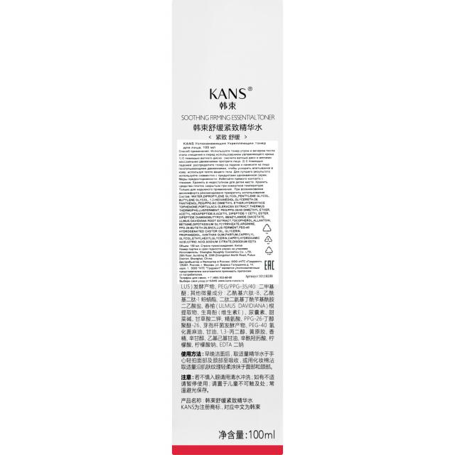 При выборе той или иной линейки KANS рекомендуем ориентироваться именно на состояние кожи, а не на конкретный возраст. Омолаживающий уход за чувствительной кожей лица с первыми признаками возрастных изменений продуктами Канс из голубой линейки Soothing Firming Essential помогает восстановить естественные защитные силы организма и использовать эффективные современные антивозрастные ингредиенты, несмотря на повышенную восприимчивость кожи к внешним негативным факторам. Для кого-то эта линейка будет актуальной в 30 лет, а кому-то подойдёт в 35 или в 40 лет. Премиальная уходовая косметика KANS не содержит в своем составе спирта, красителей, искусственных ароматизаторов, консервантов, минеральных масел и феноксиэтанола. Многократно протестирована, абсолютно безопасна и имеет все необходимые международные сертификаты качества. Небесно-голубой флакон успокаивающего тонера для лица Kans Soothing Firming Essential Toner содержит 100 мл уходового средства, выполнен из безопасного толстого пластика с многоразовой крышкой-колпаком и обтекаемым дозатором. Дополнительно упакован в прочную картонную коробку с защитным слоем слюды. Благодаря дозатору состав тонера не окисляется и не портится после первого применения, что позволяет значительно продлить срок годности открытой упаковки. Экономично расходуется: для одной уходовой процедуры достаточно 1-2 нажатий на дозатор. Заживляющий тонер для лица прекрасно сочетается с другими уходовыми продуктами из голубой линейки Soothing Firming Essential. Заботясь о сохранении молодости Вашей кожи с ранних лет вместе с научными разработками компании CHICMAX, Вы обретаете уверенность в красоте Вашей кожи и в более зрелом возрасте.