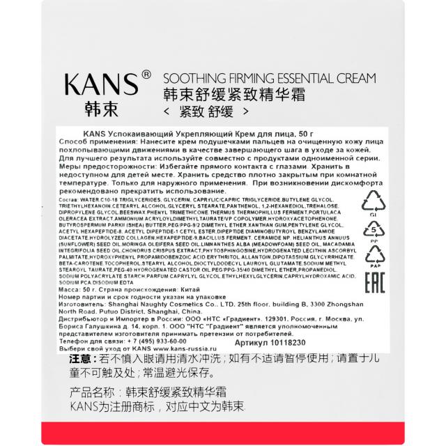 Крем для лица KANS в голубой баночке из линейки Soothing Firming Essential – эффективное средство для завершающего этапа ухода за чувствительной кожей лица с первыми признаками возрастных изменений (30+), мелкими мимическими морщинами, потерей упругости и сияния.