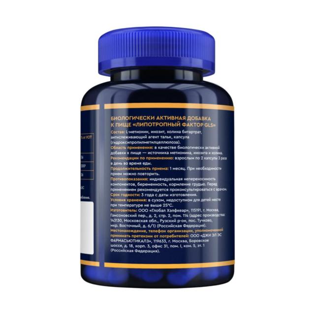 Биологически активная добавка к пище «Липотропный фактор GLS», 180 капсул (капсулы по 450 мг).