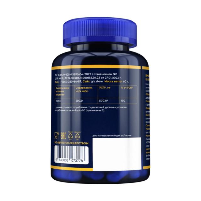 Биологически активная добавка к пище «Холин GLS», 120 капсул (капсулы по 400 мг).