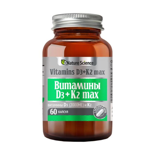 Нэйче Сайнс Витамины D3+К2 max капсулы 300мг №60