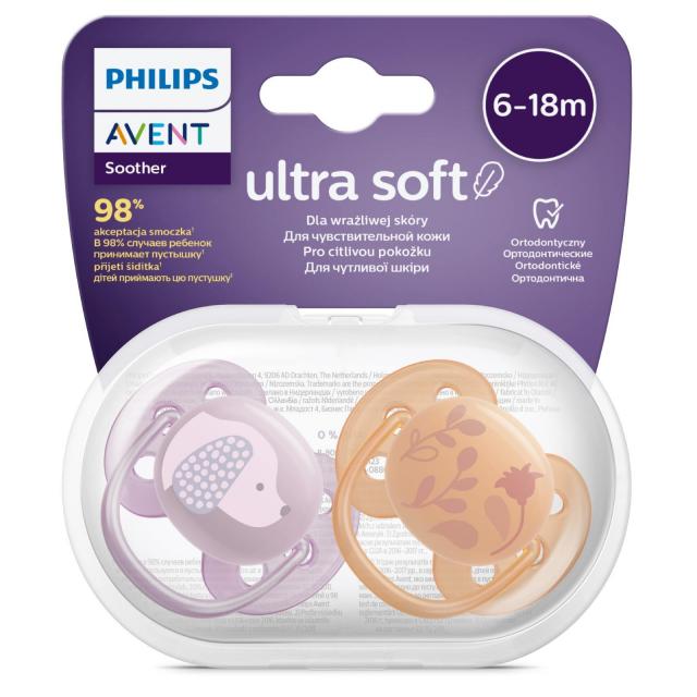 Авент пустышка Ультра Софт с футляром 6-18мес. №2 SCF091/18