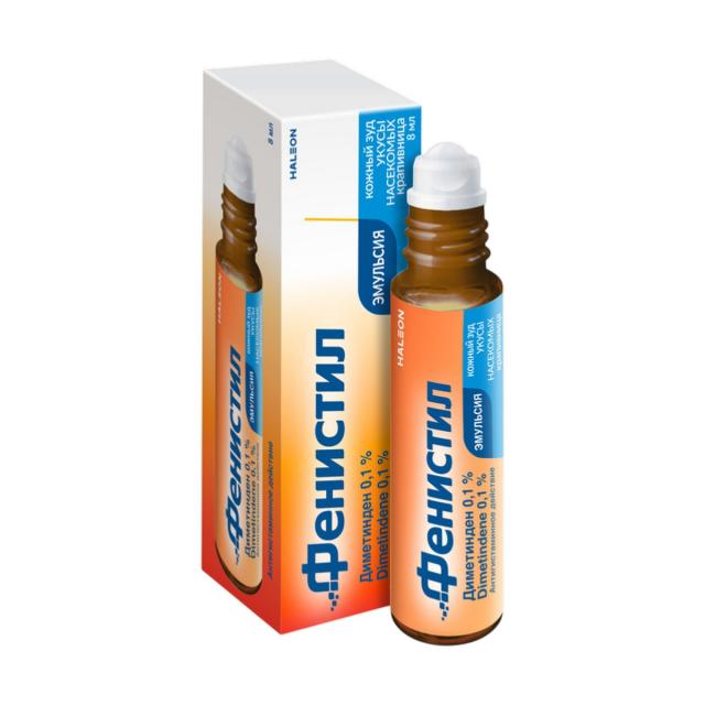 Фенистил Эмульсия с шариковым аппликатором уменьшает зуд и раздражение при укусах насекомых и кожно-аллергических реакциях.* Начинает действовать через несколько минут после нанесения.