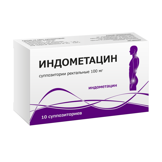 Действующее вещество: индометацин - 50 мг (100 мг).