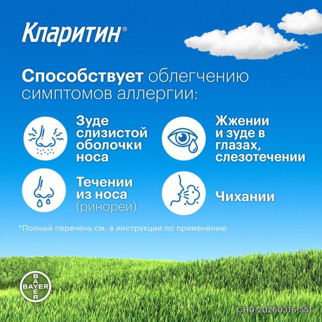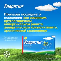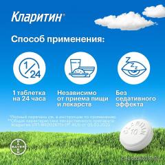 Лоратадин подавляет действие вещества под названием «гистамин», который вырабатывается в организме при аллергических реакциях и является причиной появления основных симптомов аллергии. Лоратадин обладает быстрым и длительным противоаллергическим действием. Начало действия – в течение 30 минут после приема лекарственного препарата Кларитин® внутрь. Антигистаминный эффект достигает максимума спустя 8–12 часов от начала действия и длится более 24 часов. Не вызывает сонливости и не влияет на скорость психомоторных реакций при приеме в рекомендованных дозах.