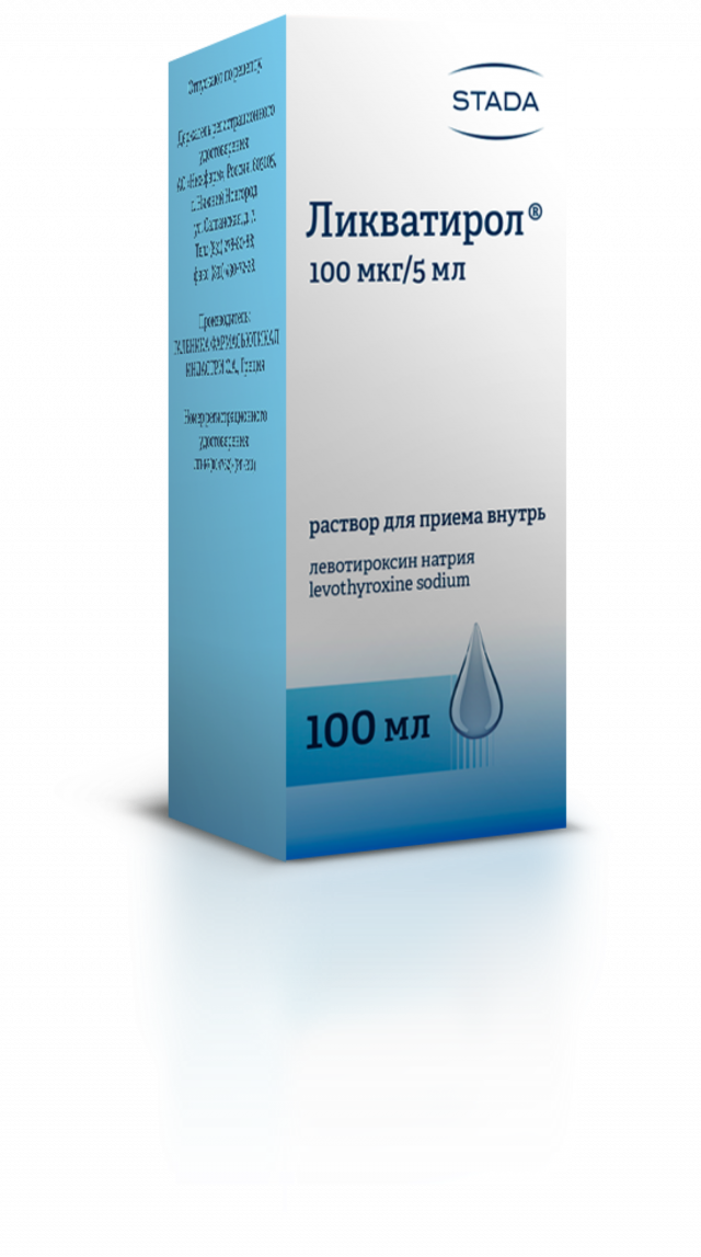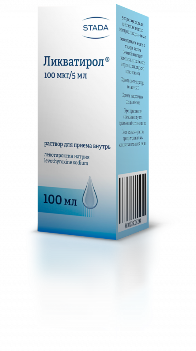 Состав: Действующее вещество: левотироксин натрия. 5 мл раствора для приема внутрь содержат 100 мкг левотироксина натрия. Вспомогательные вещества, наличие которых надо учитывать в составе лекарственного препарата: натрий, метилпарагидроксибензоат натрия (см. раздел 4.4.). Полныйпереченьвспомогательныхвеществприведен в разделе 6.1.