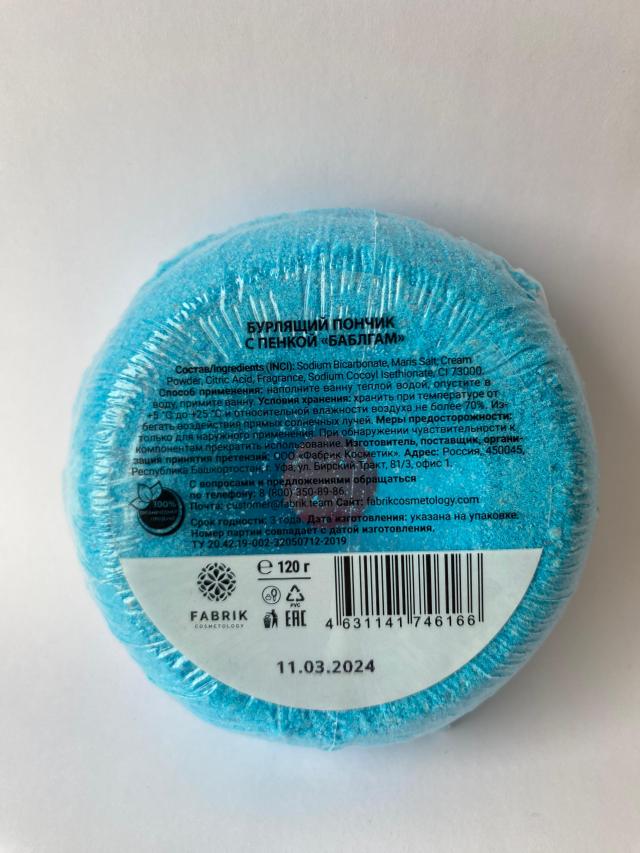 Состав/Ingredients (INCI): Sodium Bicarbonate, Maris Salt, Cream Powder, Citric Acid, Fragrance, Sodium Cocoyl Isethionate, CI 73000.