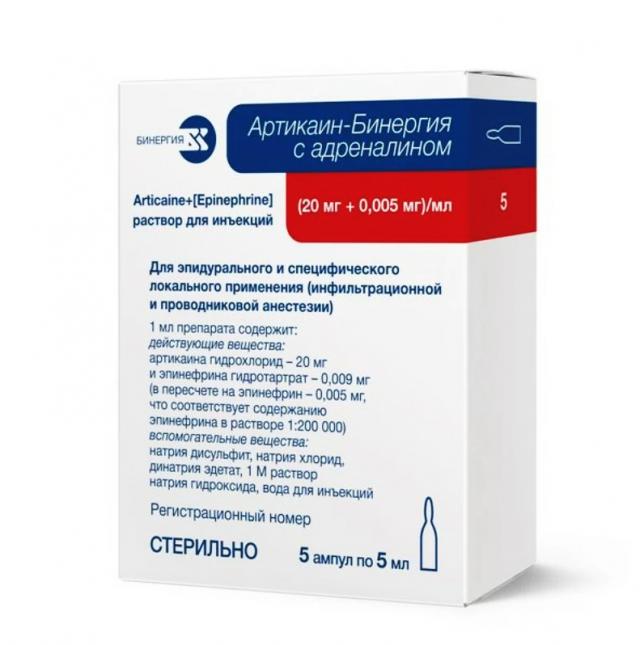 Артикаин-Бинергия с адреналином раствор для инъекций 20мг+0,005мг/мл 5мл №5