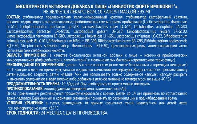БИОЛОГИЧЕСКИ АКТИВНАЯ ДОБАВКА К ПИЩЕ «СИНБИОТИК ФОРТЕ ИМПЛОВИТ®»