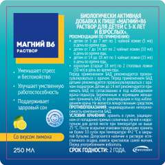 Биологически активная добавка к пище «Магний+B6 раствор для детей с 3-х лет и взрослых» дополнительный источник магния и витамина B6