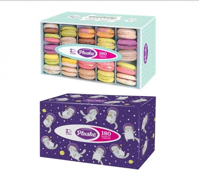 Салфетки Бумажные в коробочках, Plushe Ассорти 180листов, 2 слоя. V-сложение, 25 в коробе