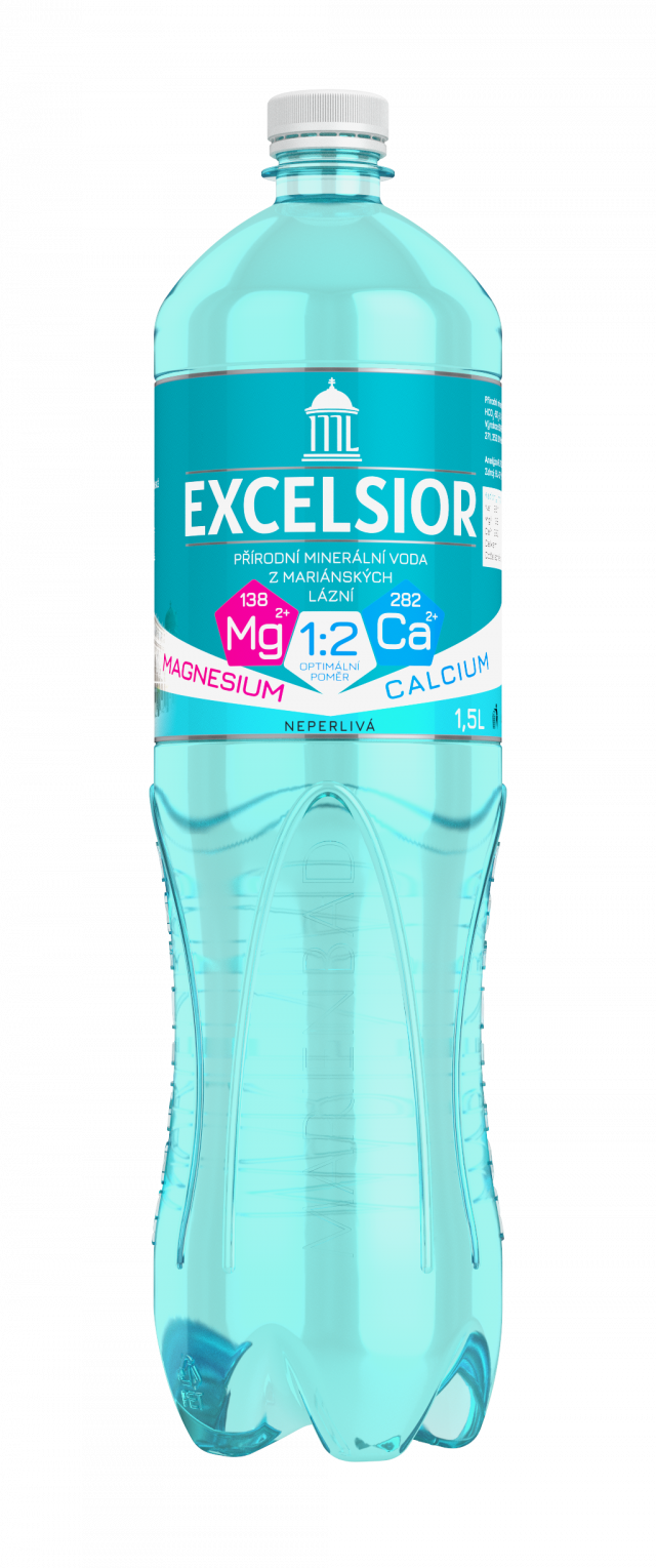 Минеральная вода «Эксельсиор» природной газации, добываемая в Марианских Лазнях в Чехии уже более ста лет, известна своим идеальным соотношением магния и кальция 1:2. «Эксельсиор» стал символом здоровья и долголетия благодаря своему оптимальному минеральному составу. Минерализация воды составляет 2,0-3,0 г/л, что делает ее подходящей для лечебно-столового употребления. Одной из уникальных особенностей воды «Эксельсиор» является ее сбалансированное содержание магния и кальция. Эти минералы конкурируют за всасывание в организме: кальций способствует сокращению мускулатуры, а магний помогает ее расслаблению. Недостаток магния может негативно влиять на усвоение кальция, что может привести к развитию остеопороза, судорожного синдрома, гормональных нарушений и даже онкологических заболеваний.