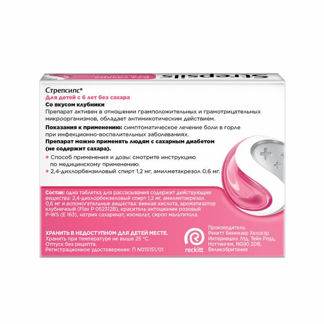 Стрепсилс Детский Клубника без сахара таблетки для рассасывания №24