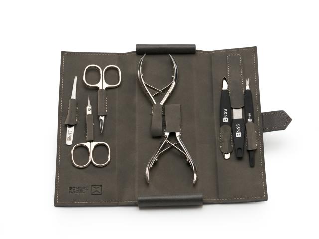 Маникюрный набор из обрезной линейки SN Professional – это восемь профессиональных инструментов из высокопрочной стали с добавлением кобальта, прошедшие дополнительную профессиональную заточку. Инструменты для экспресс-маникюра помещены в элегантный прочный футляр черного цвета, который удобно и эргономично размещает все предметы в правильном порядке, обеспечивает защиту и сохранность инструментов.