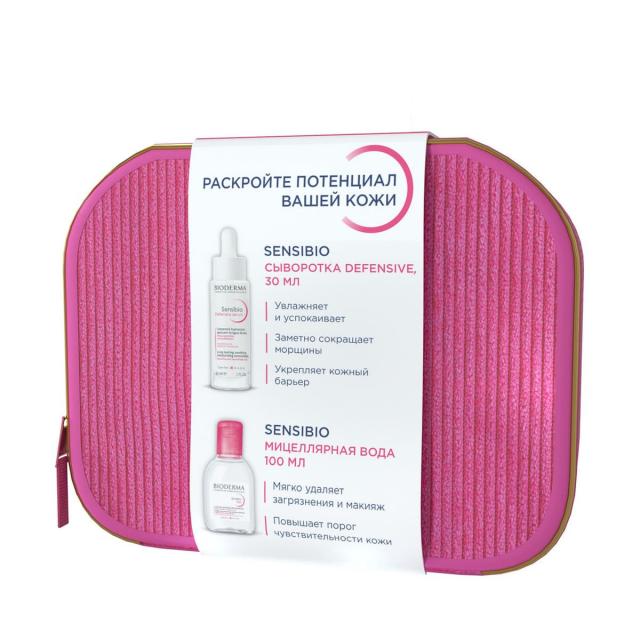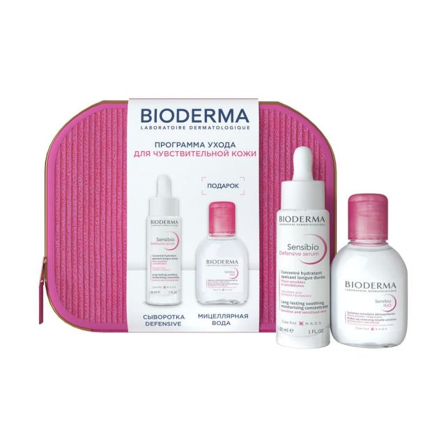Биодерма Сенсибио набор сыворотка 30мл+ Н2О вода мицеллярная 100мл+косметичка