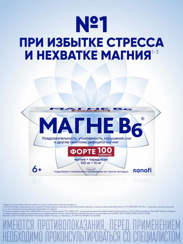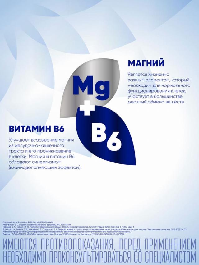 Пиридоксин (витамин B6) участвует во многих метаболических процессах, способствует улучшению всасывания магния из желудочно-кишечного тракта и его проникновению в клетки.