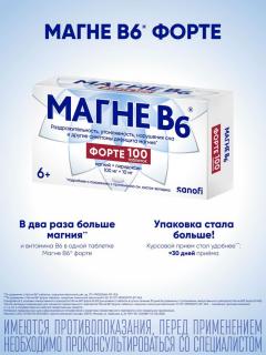 При назначении внутрь тетрациклинов необходимо соблюдать интервал не менее трех часов между приемом внутрь тетрациклина и Магне B6® форте, так как препараты магния уменьшают всасывание тетрациклинов.