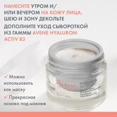 Нанесите утром и/ или вечером на кожу лица, шею и зону декольте. Дополните уход сывороткой из гаммы AVENE Hyaluron Activ B3. Можно использовать как маску. Прекрасная основа под макияж.