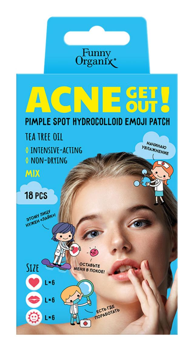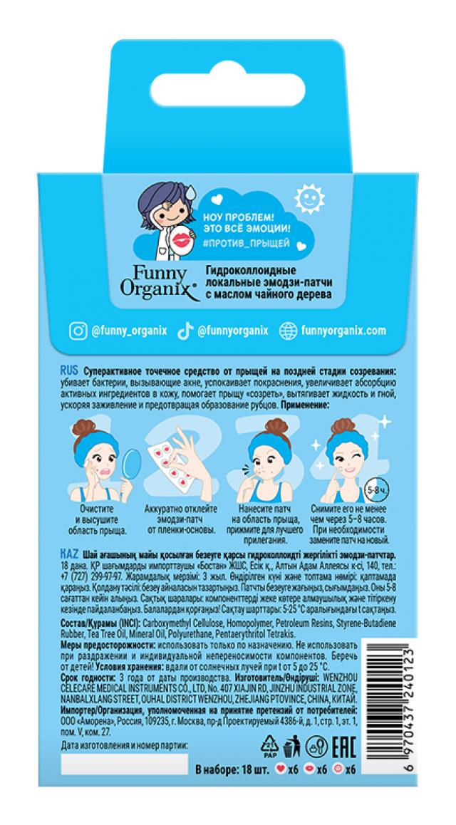 Funny Organix Гидроколлоидные локальные эмодзи-патчи от акне с маслом чайного дерева