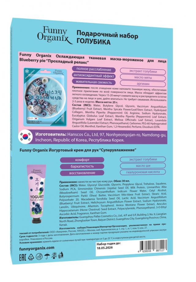 Фанни Органикс Голубика набор крем д/рук йогуртовый 30мл+маска для лица тканевая Прохладный релакс