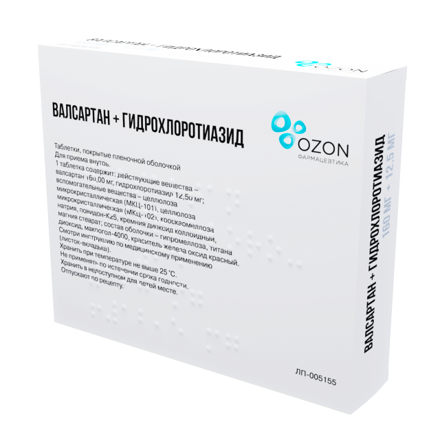 Валсартан+Гидрохлортиазид Озон таблетки покрытые оболочкой 160мг+12,5мг №30