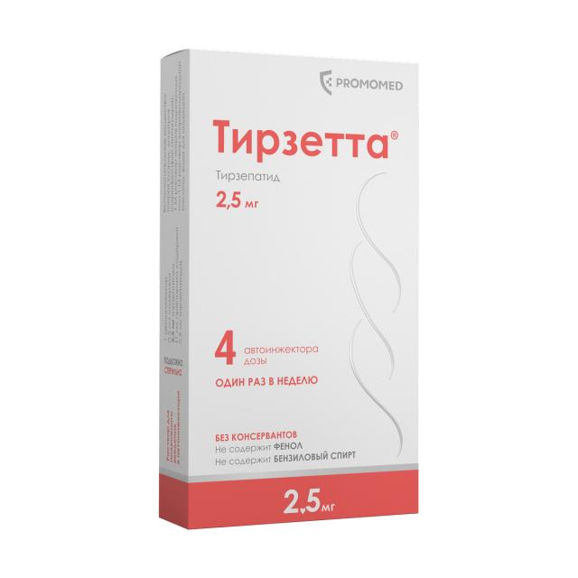 Каждый шприц/картридж содержит 2,5 мг тирзепатида в 0,5 мл раствора (5 мг/мл).