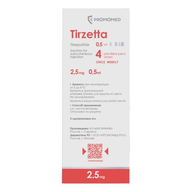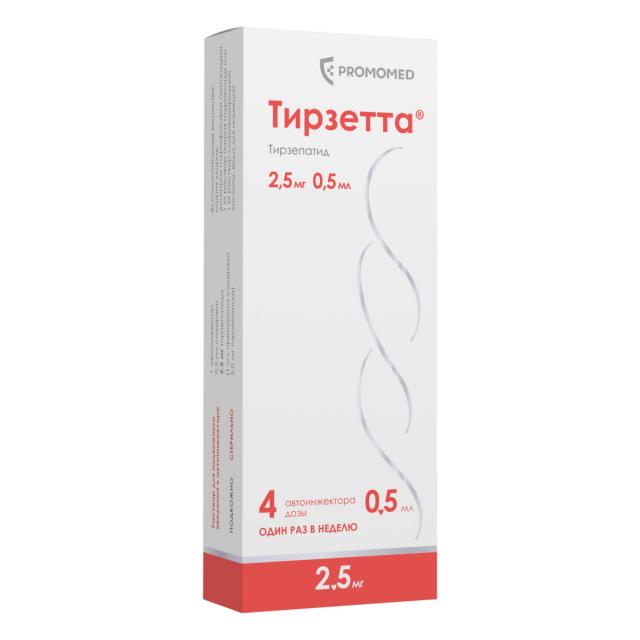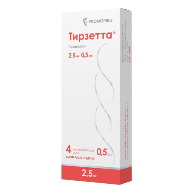 Каждый шприц/картридж содержит 2,5 мг тирзепатида в 0,5 мл раствора (5 мг/мл).