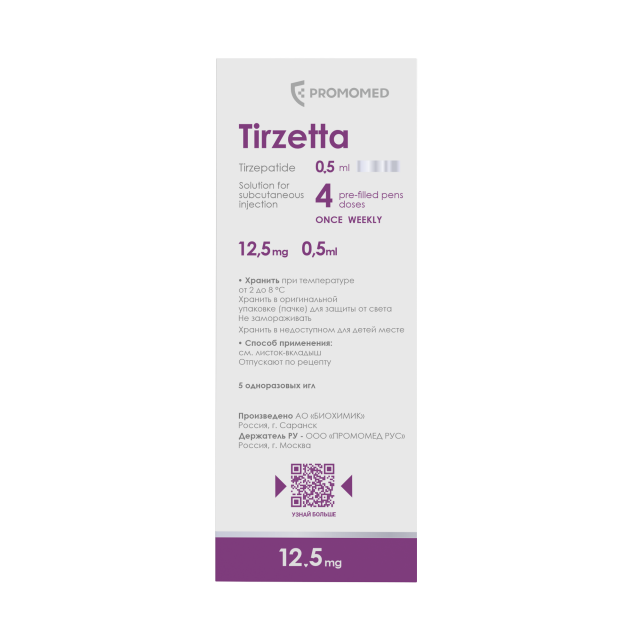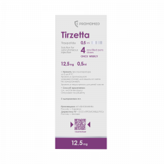 Каждый шприц/картридж содержит 12,5 мг тирзепатида в 0,5 мл раствора (25 мг/мл).