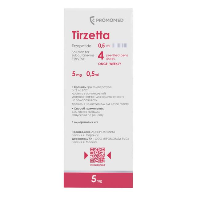 Каждый шприц/картридж содержит 5 мг тирзепатида в 0,5 мл раствора (10 мг/мл).