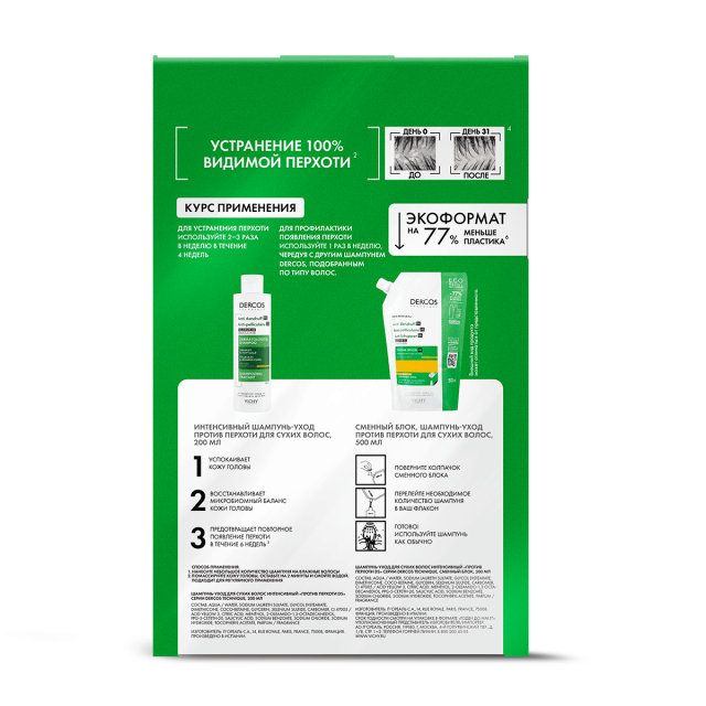Виши Деркос шампунь против перхоти для сухих волос 200мл+шампунь 500мл сменный блок